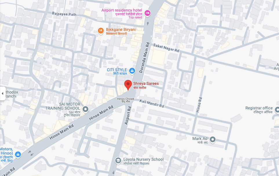Address: Shreya Sarees, Hinoo Chowk, Opp. Hanuman Temple, Ranchi, Jharkhand-834002